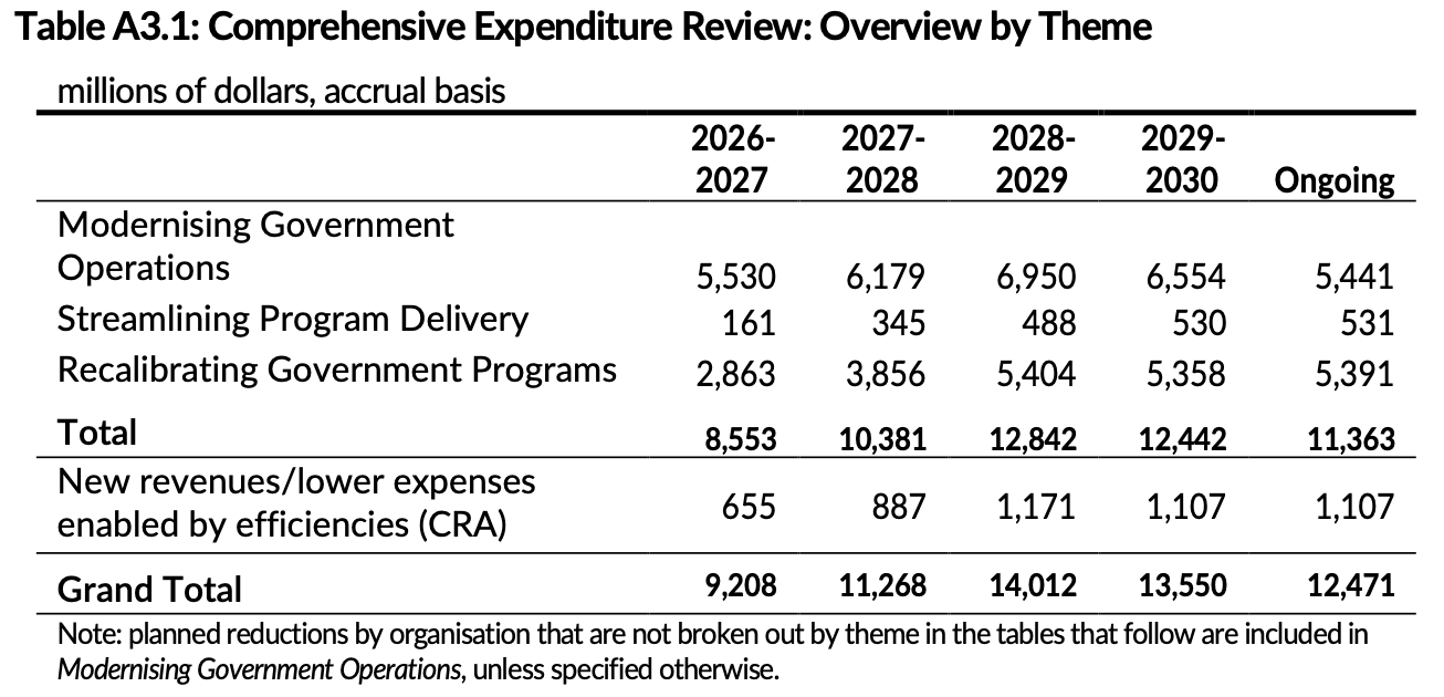 Fifth, we are not done yet. Detailed departmental estimates will reveal more specific cuts - oops, sorry, “modernisation” - that will create more localized pain for numerous Liberal-fed policy and political constituencies of the past. More importantly, and welcomingly, the Budget says the government will adopt “a regular, predictable review schedule to ensure continuous optimization of resources. Future reviews will focus on specific horizontal themes, such as consolidating the administration of programs, fostering AI implementation and scale-up in the public service, and reviewing business subsidies and skills programming.” More savings will be reported on next year’s budget.